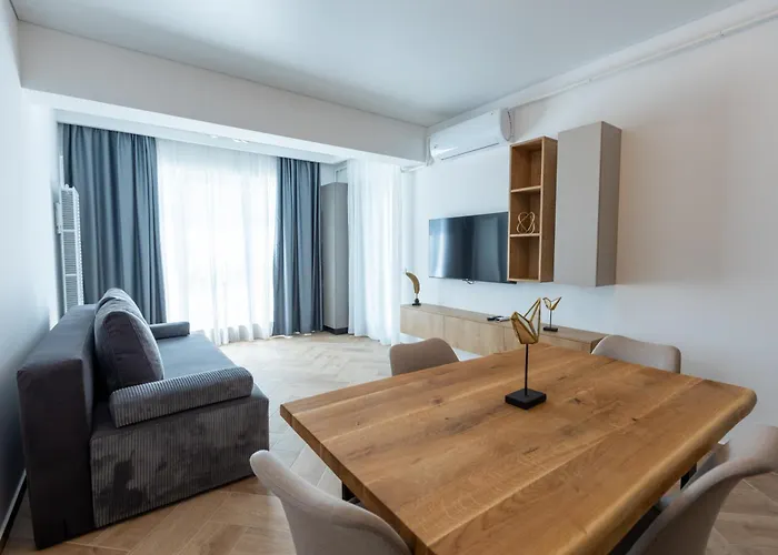 Năvodari Tatil Kampı civarında bulunan Marina View Apartments Mamaia Nord dairesi her türlü konfora sahip denize nazır konaklama imkanı sunmaktadır. Bu denize nazır dairede teras bulunmaktadır.